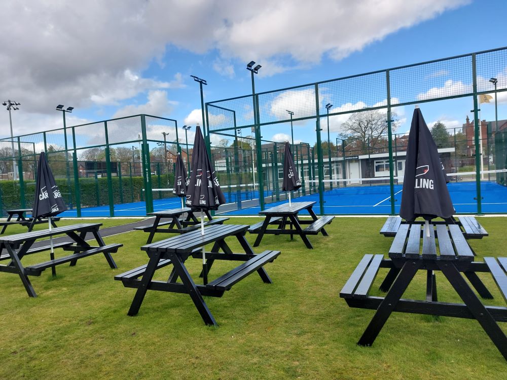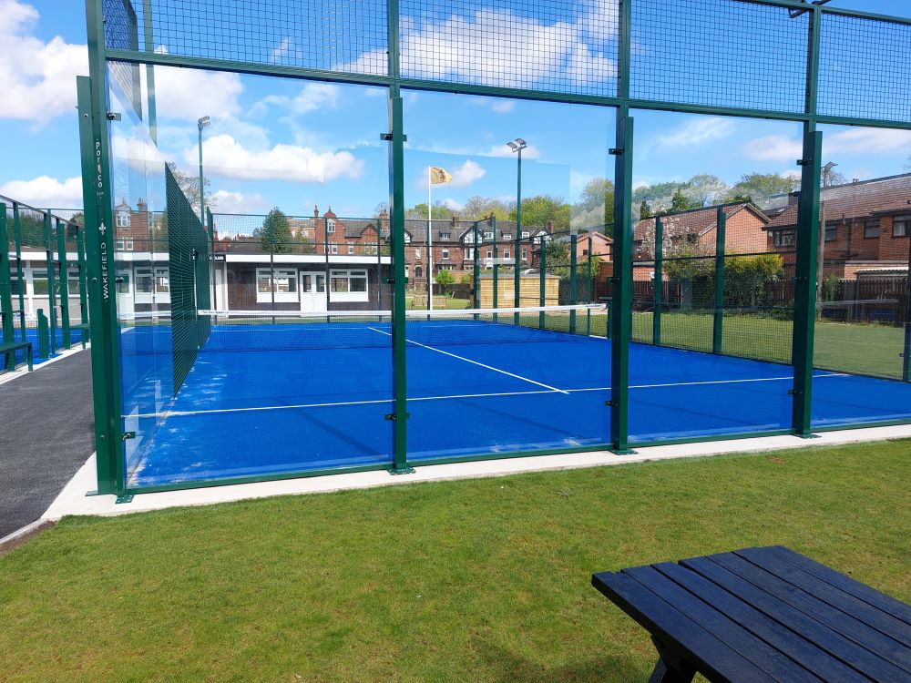 @porticosportuk installed our Elite Padel in Blue which is a fantastic contrast against the green surrounding turf.